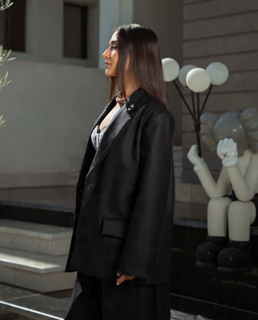 SaleBlack leather blazer