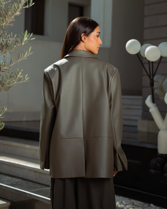 SaleOlive leather blazer